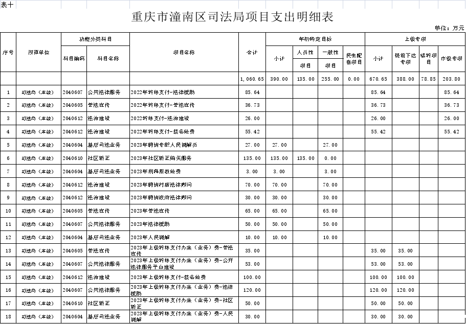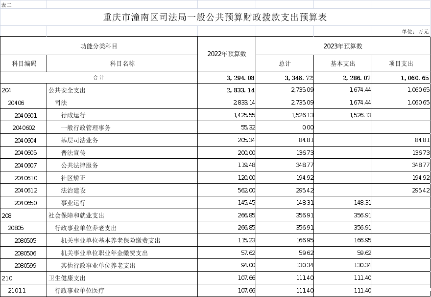 重庆市潼南区司法局(本级)2023年单位预算公开