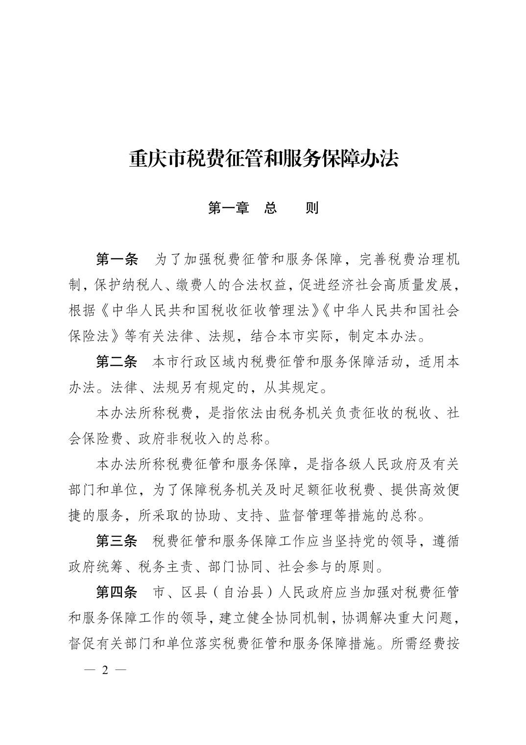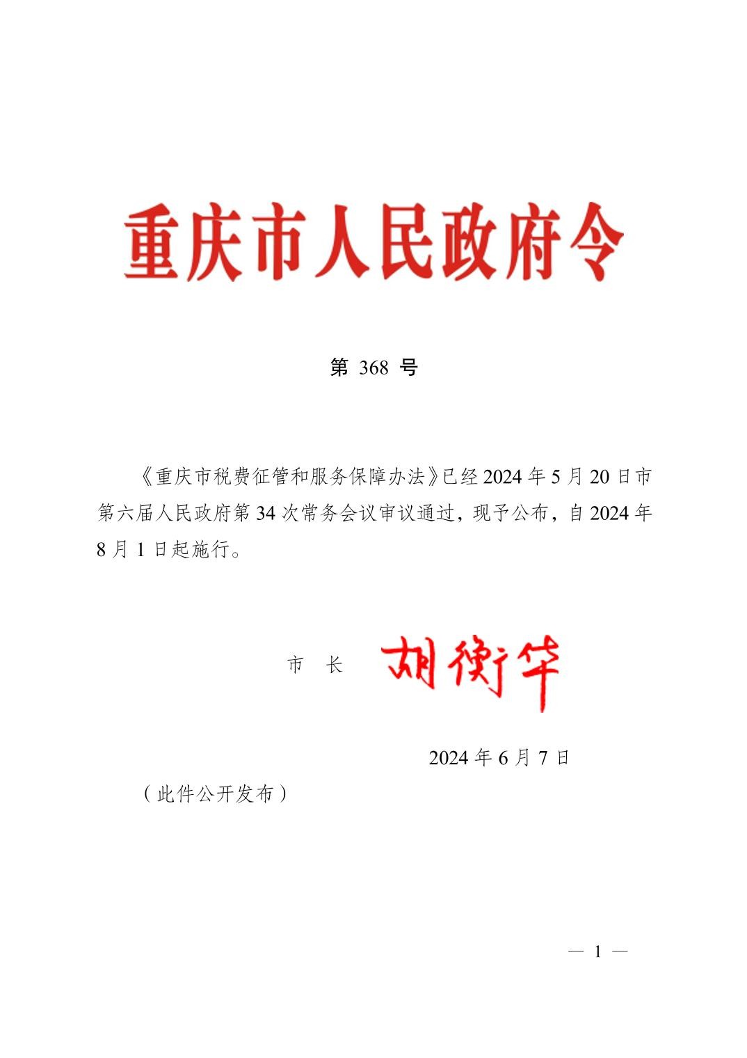 重庆市税费征管和服务保障办法(重庆市人民政府令第368号)
