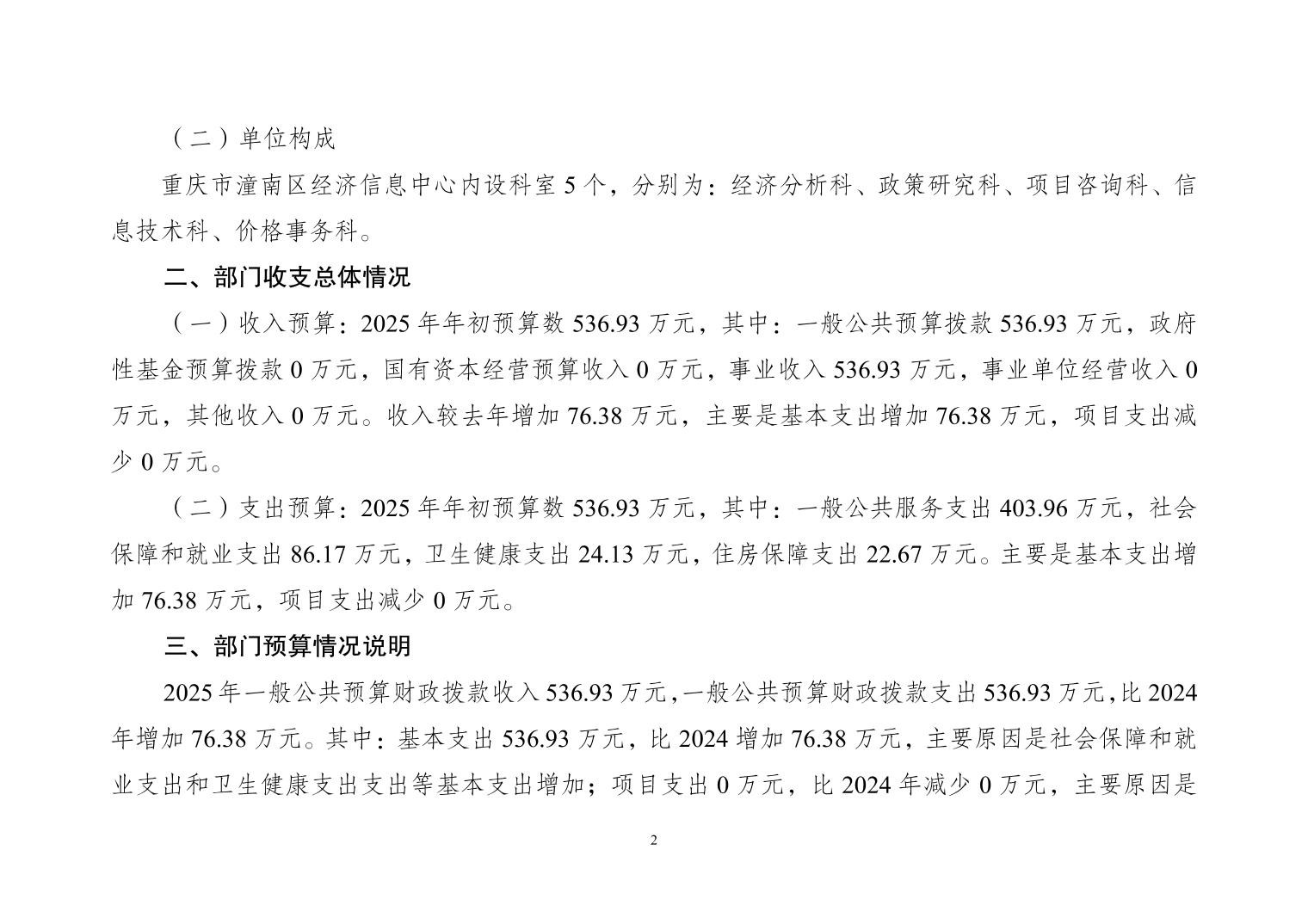 重庆市潼南区经济信息中心2025年部门预算情况说明