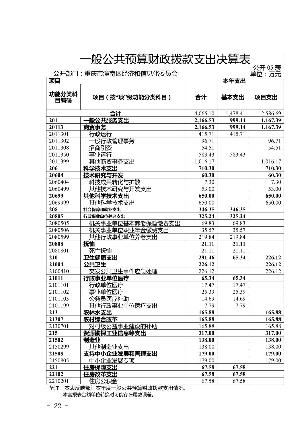 重庆市潼南区经济和信息化委员会2022年度决算公开