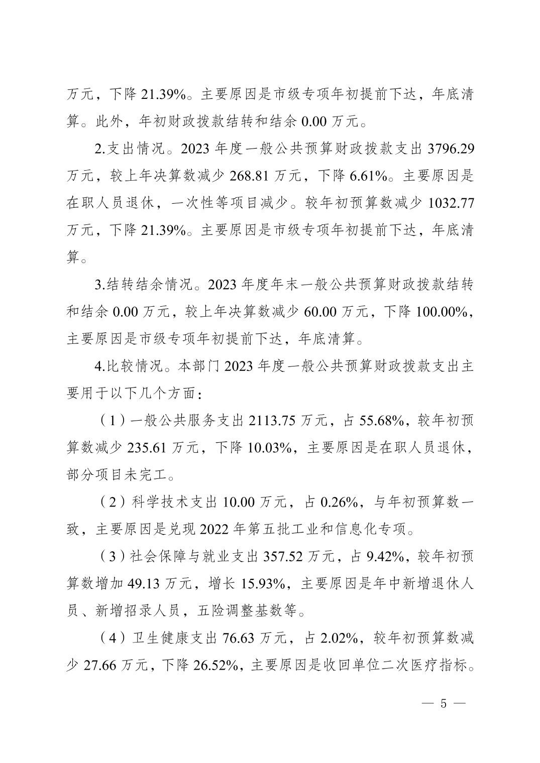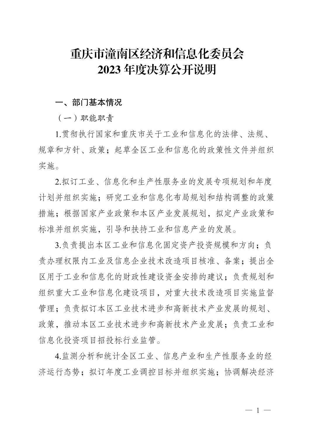 重庆市潼南区经济和信息化委员会2023年度部门决算公开