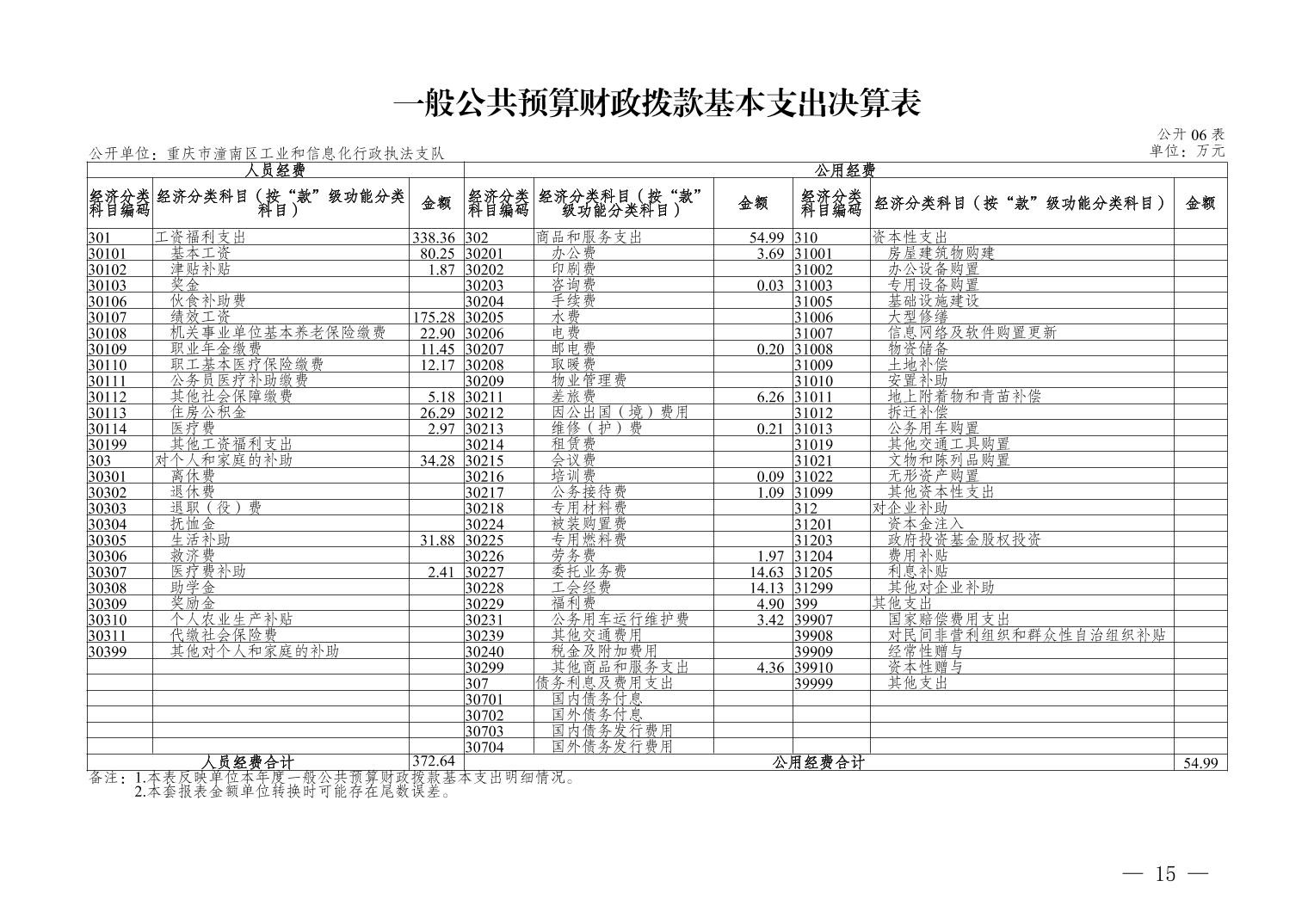重庆市潼南区工业和信息化行政执法支队2023年度决算情况说明