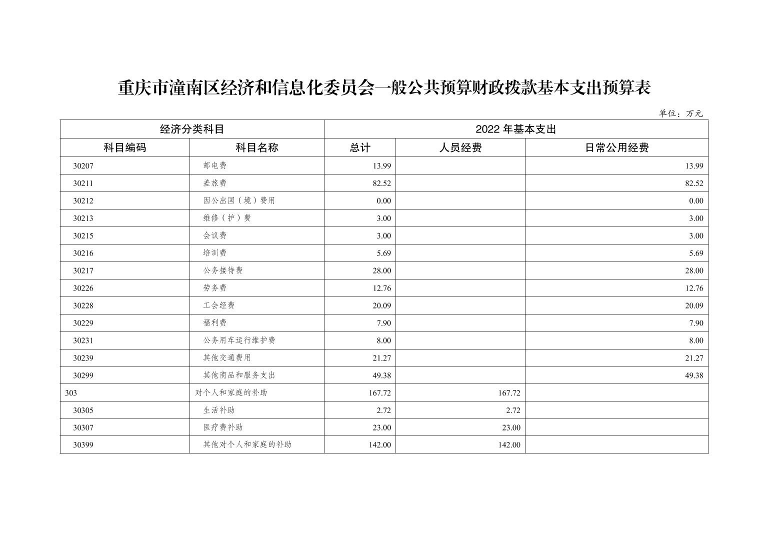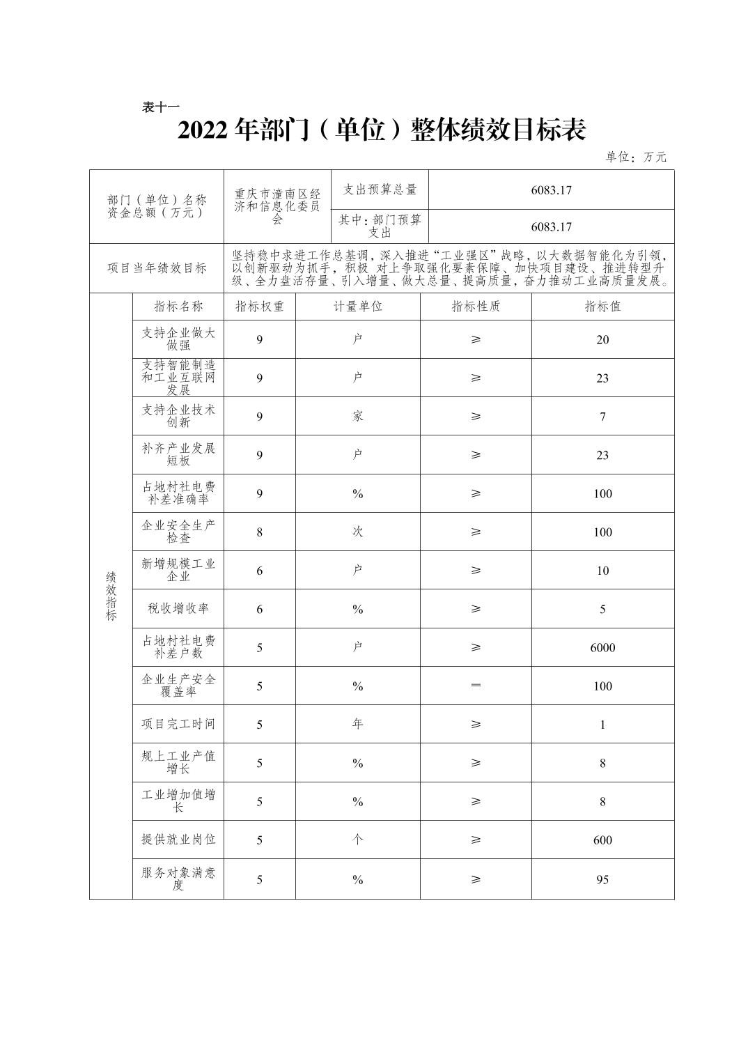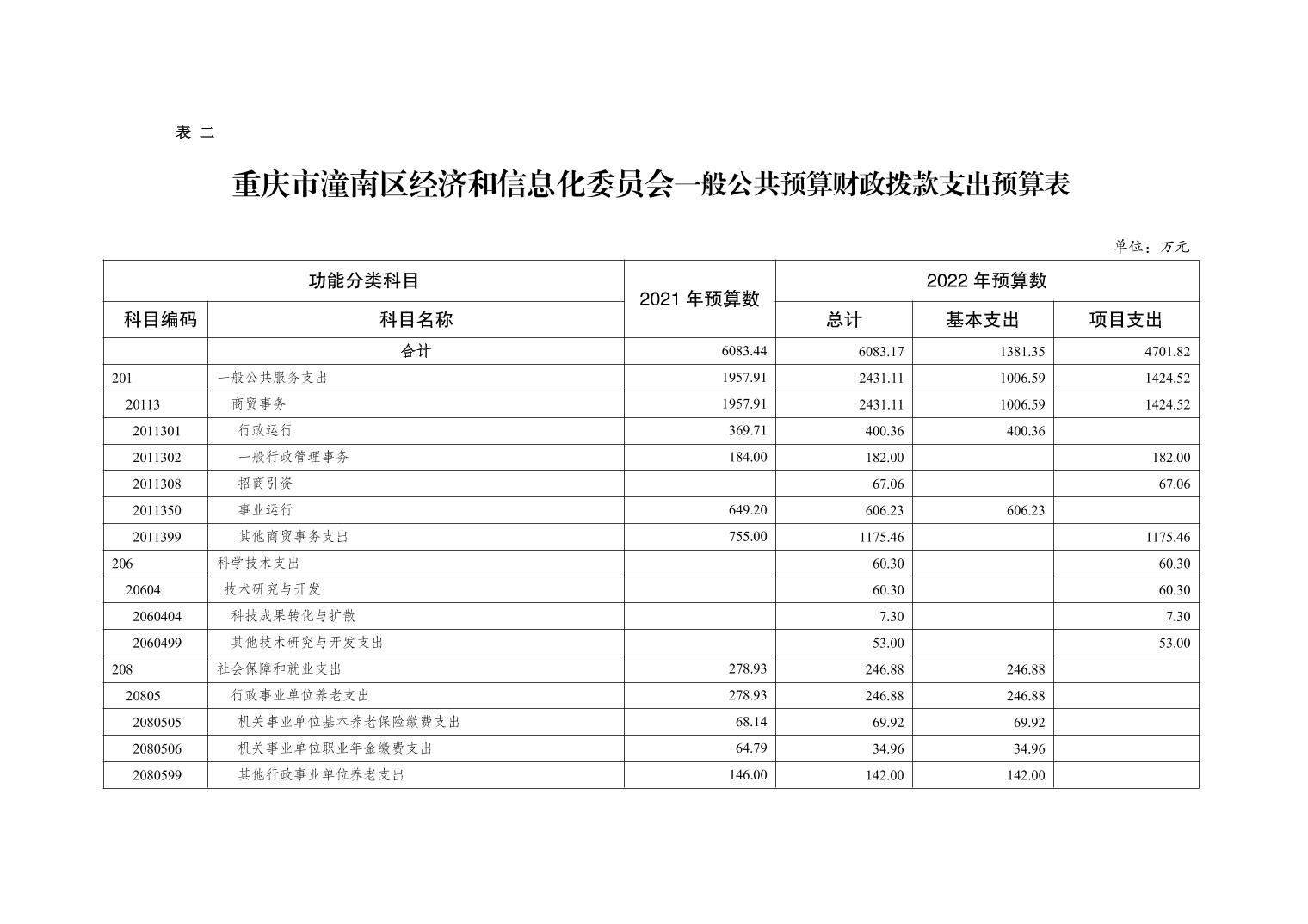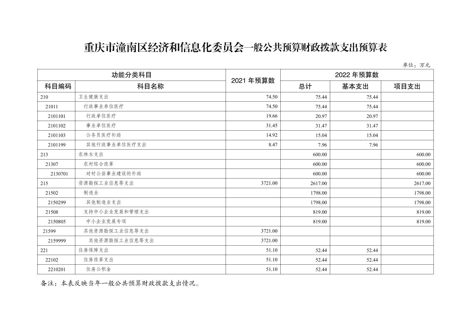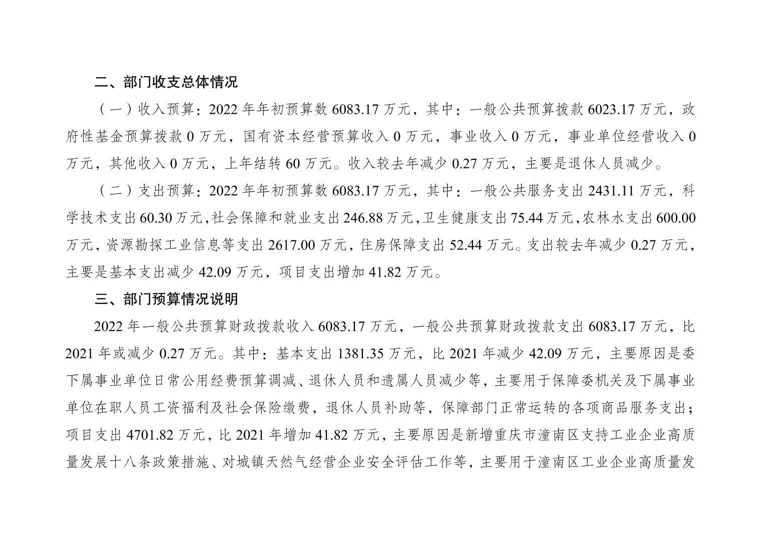 重庆市潼南区经济和信息化委员会2022年部门预算情况说明