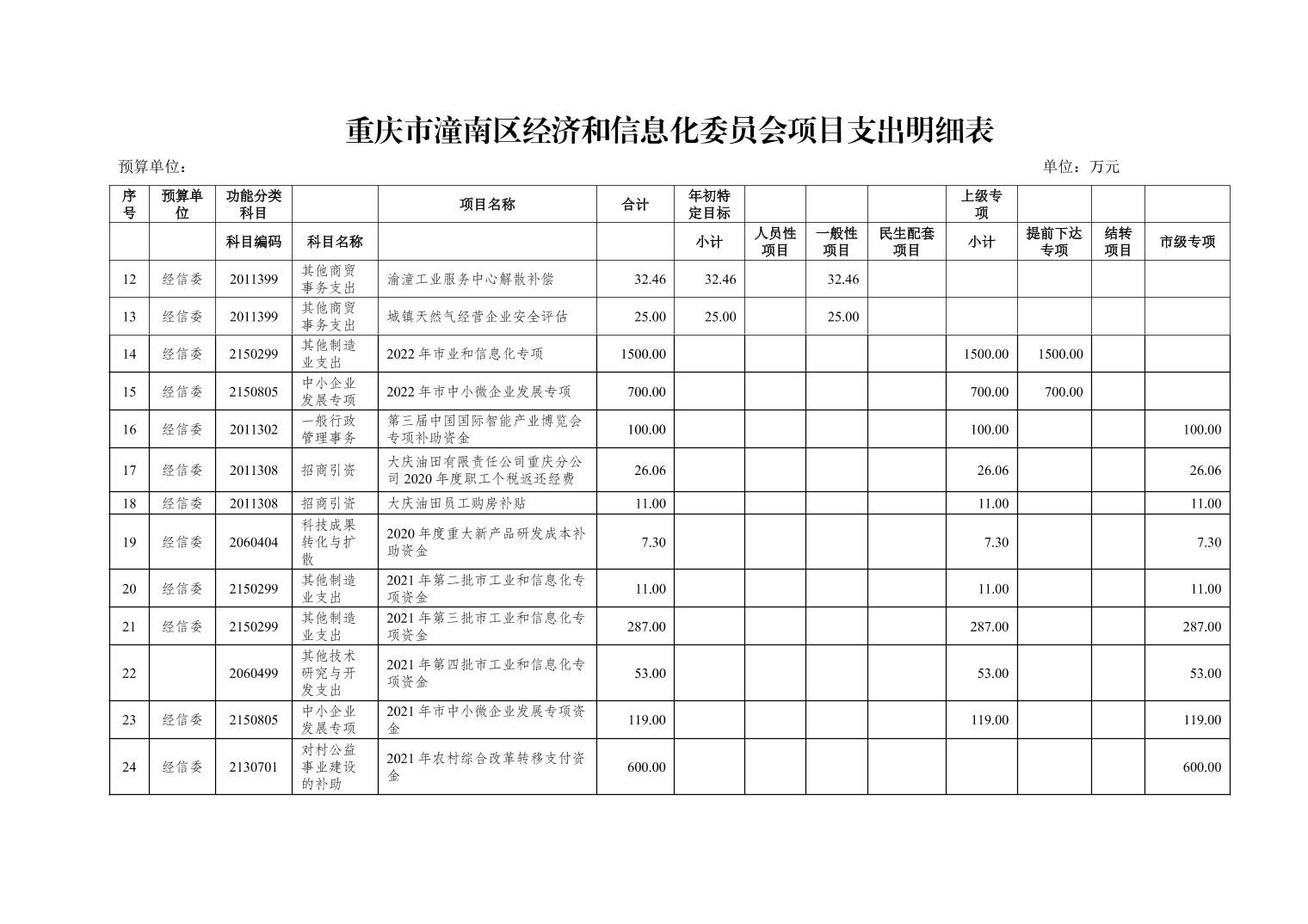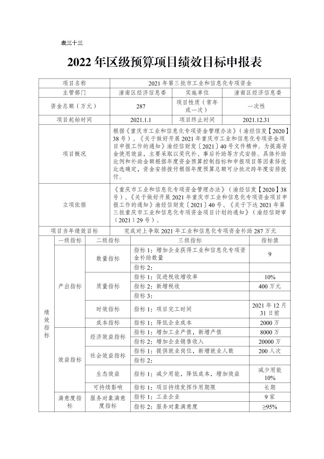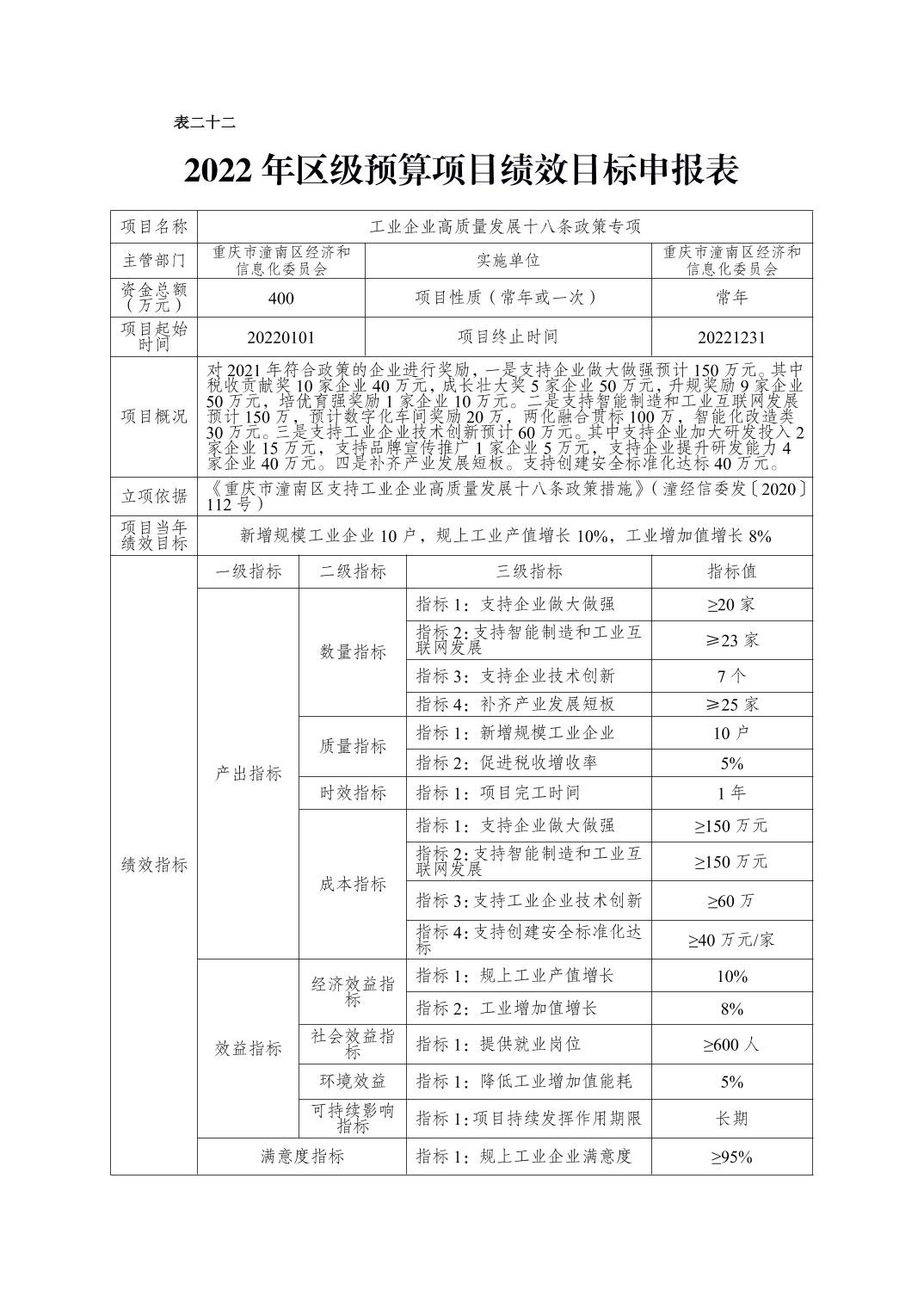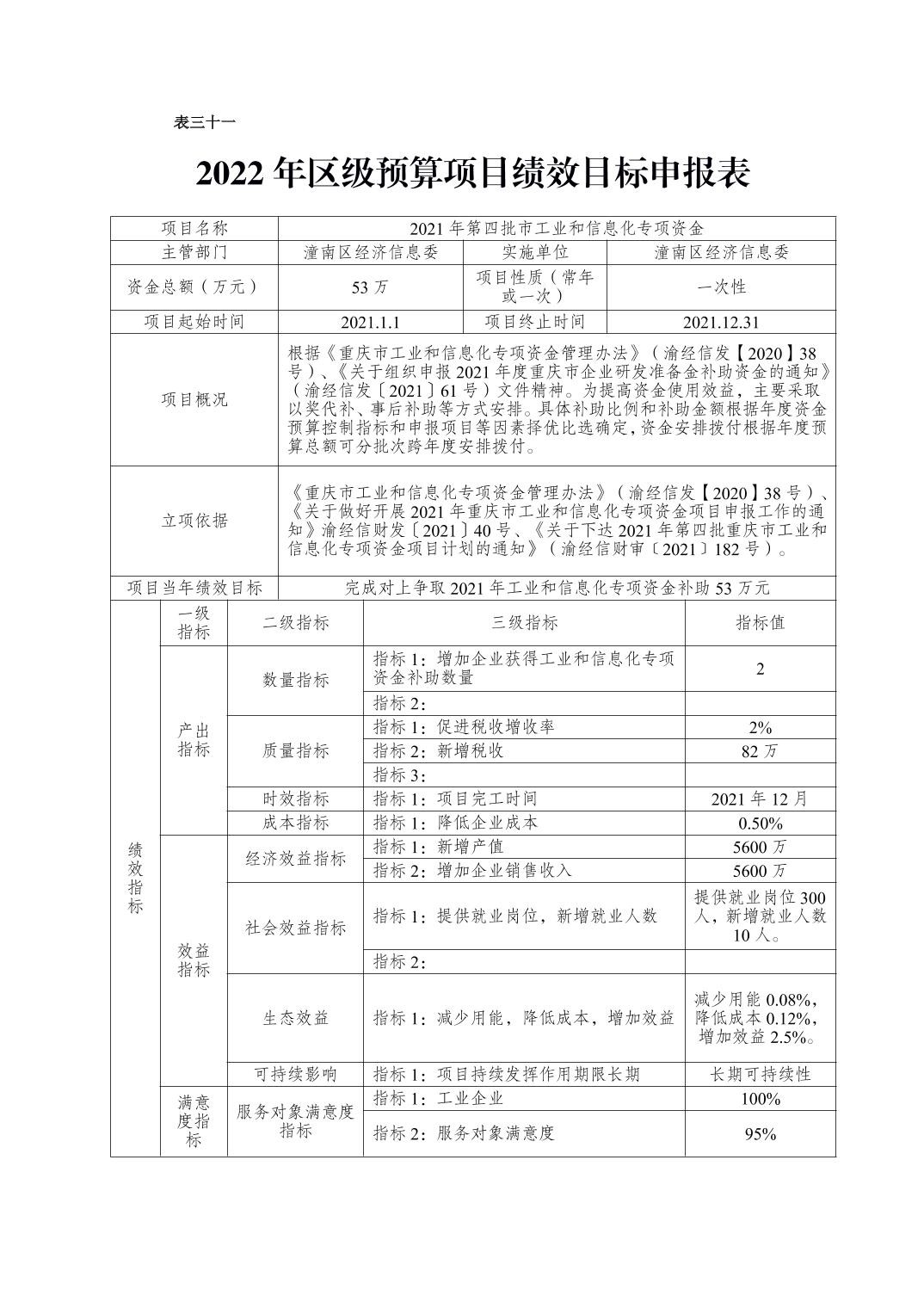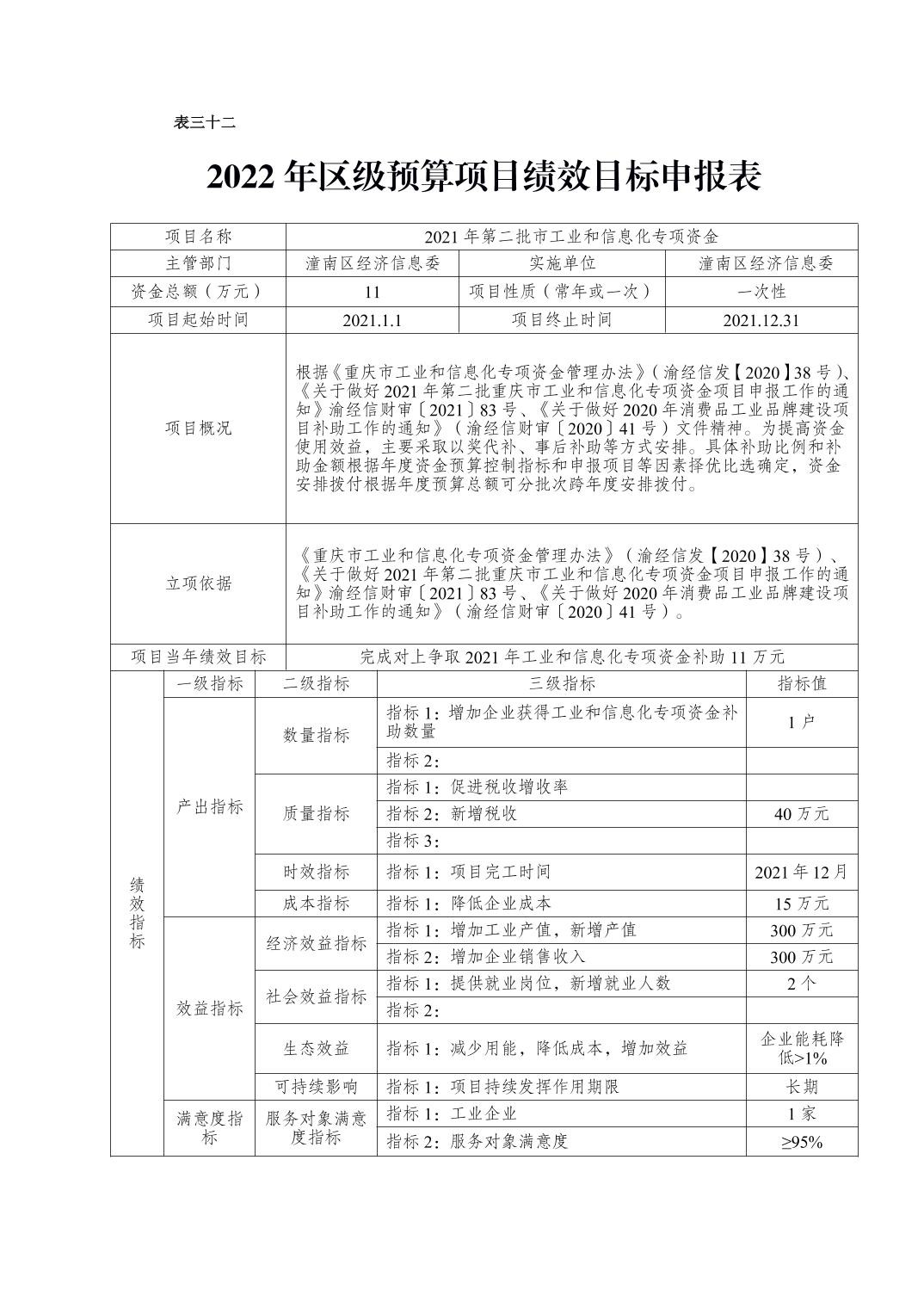 重庆市潼南区经济和信息化委员会2022年部门预算情况说明