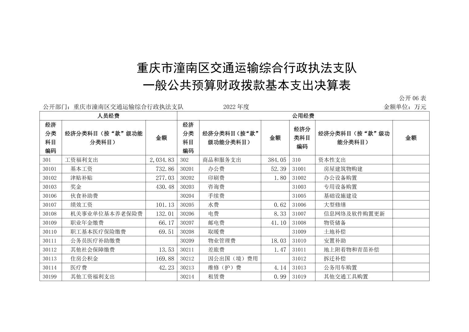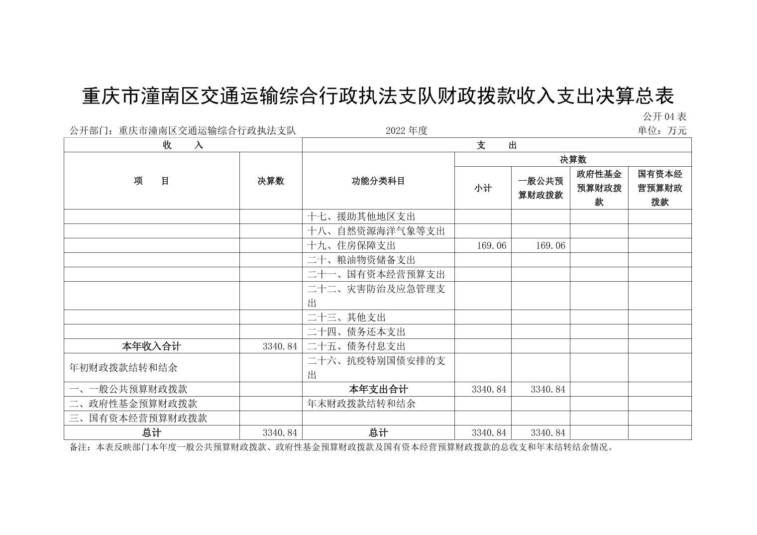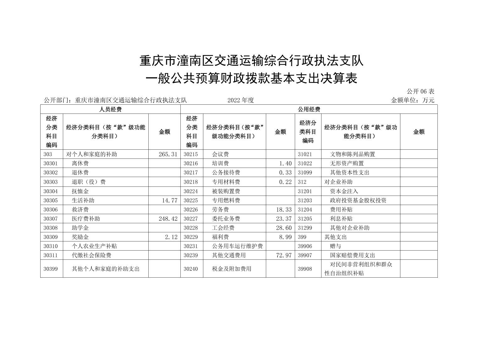 重庆市潼南区交通运输综合行政执法支队2022年度部门决算公开