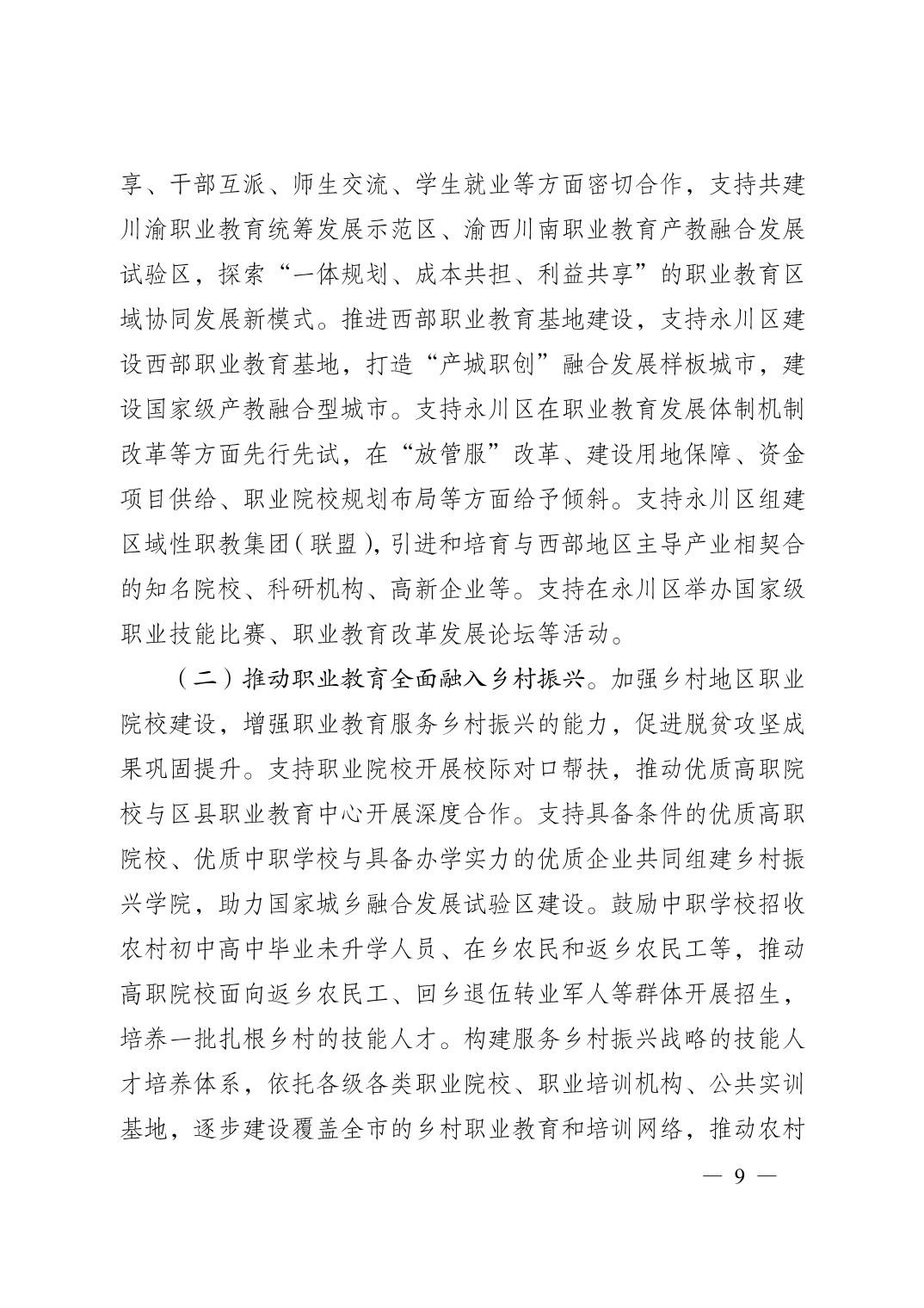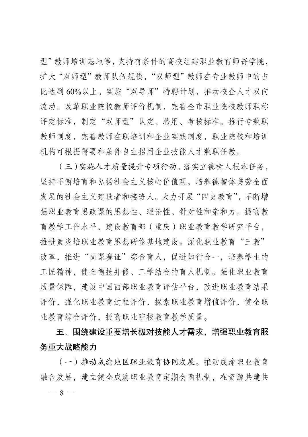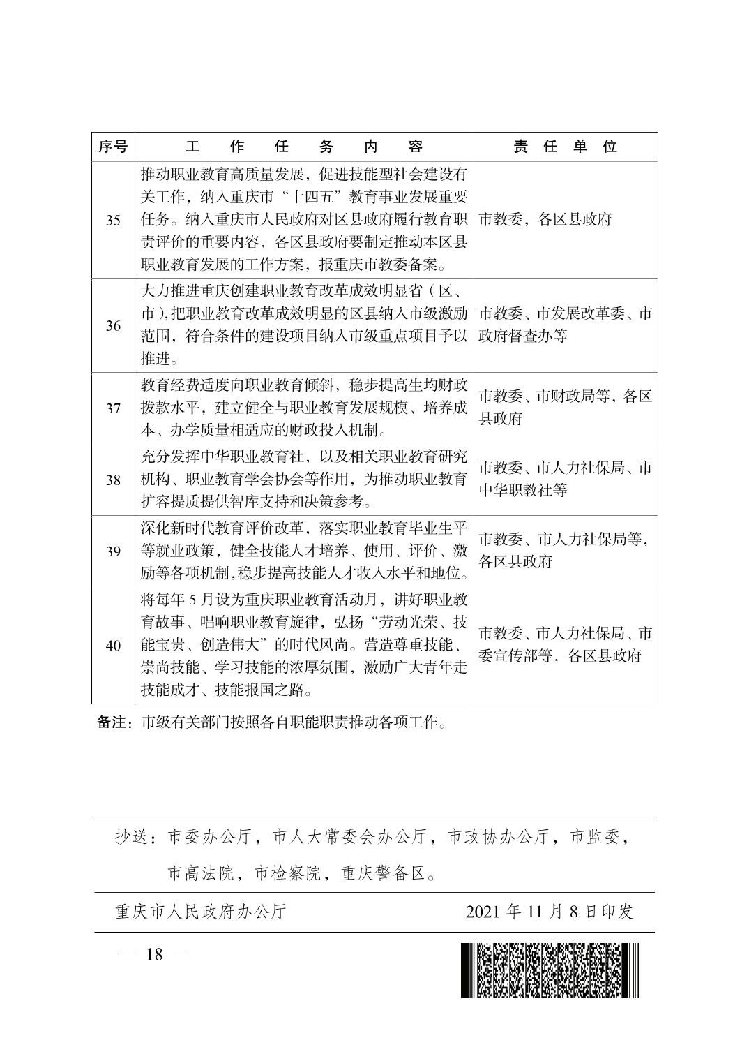 教育部重庆市人民政府渝府发〔2021〕35号关于推动重庆市职业教育高质量发展促进技能型社会建设的意见
