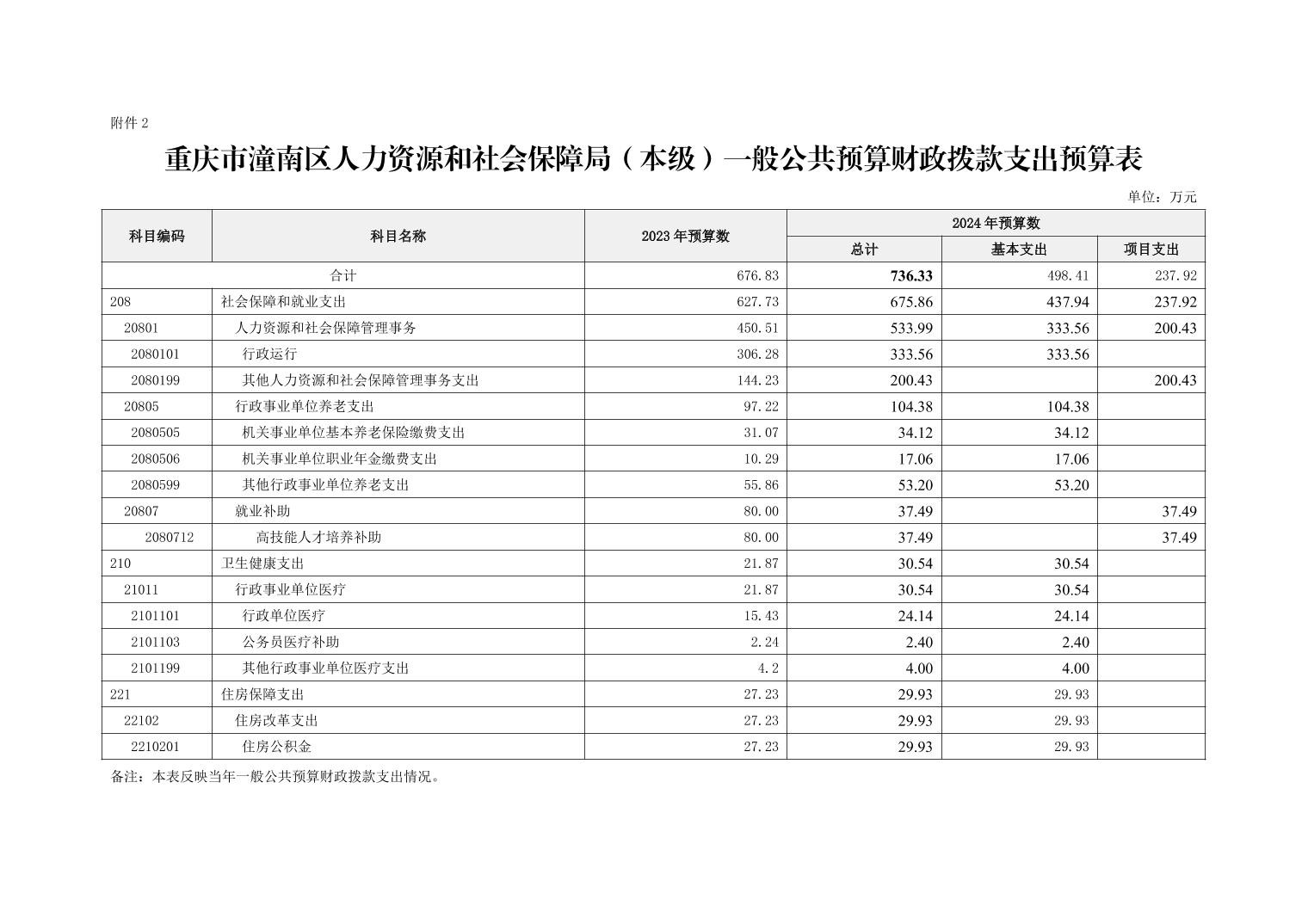 重庆市潼南区人力资源和社会保障局(本级)2024年度部门预算情况说明