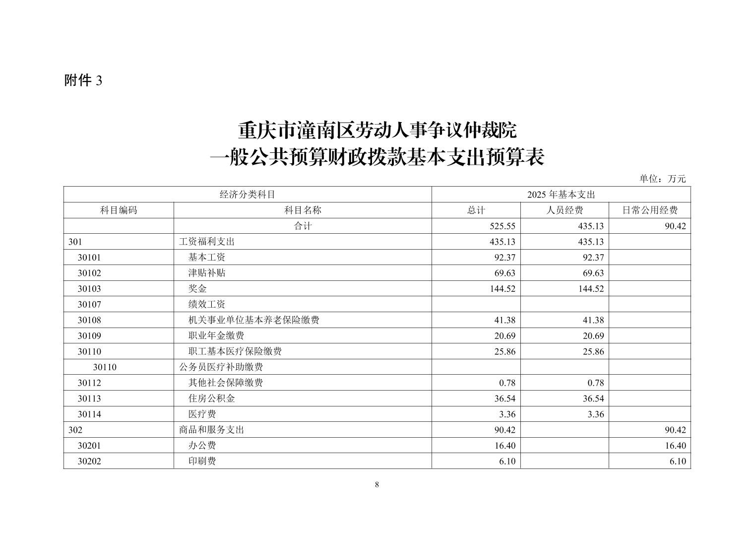 重庆市潼南区劳动人事争议仲裁院2025年部门预算情况说明