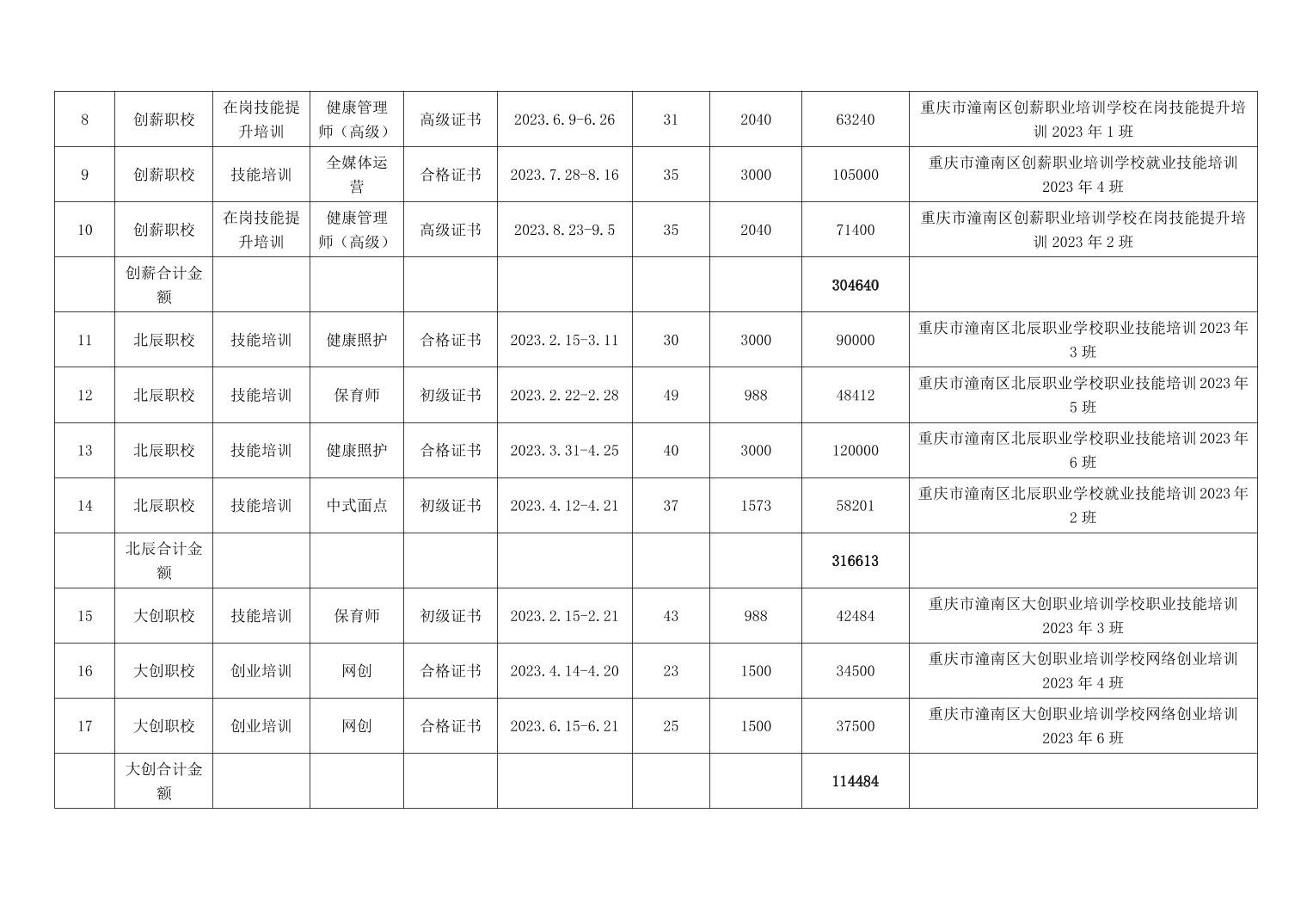 潼南区2024年培训机构享受职业培训补贴信息公示(2024年第二批补贴)