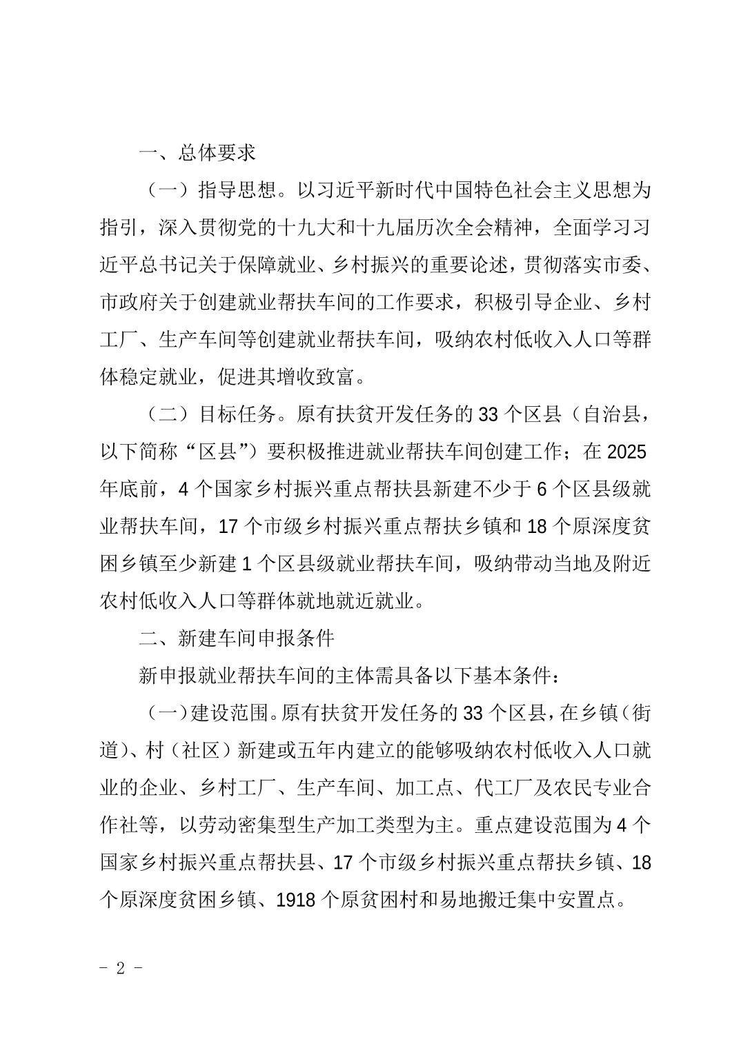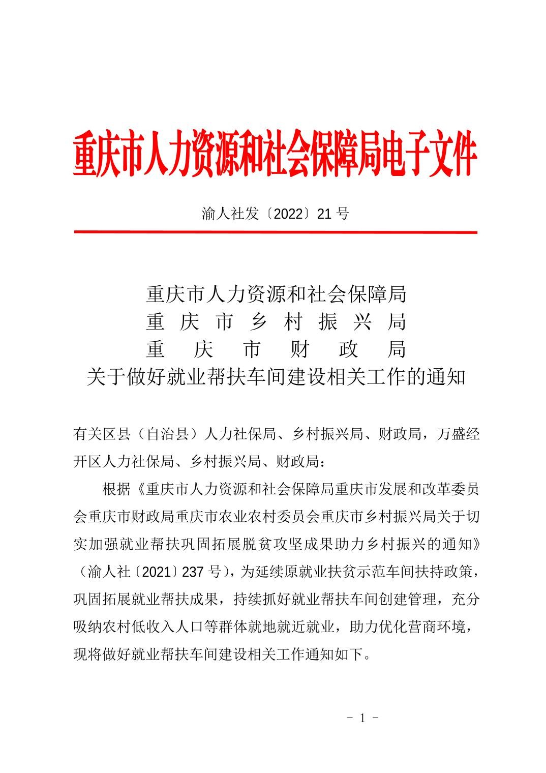 重庆市人力资源和社会保障局重庆市乡村振兴局重庆市财政局关于做好就业帮扶车间建设相关工作的通知