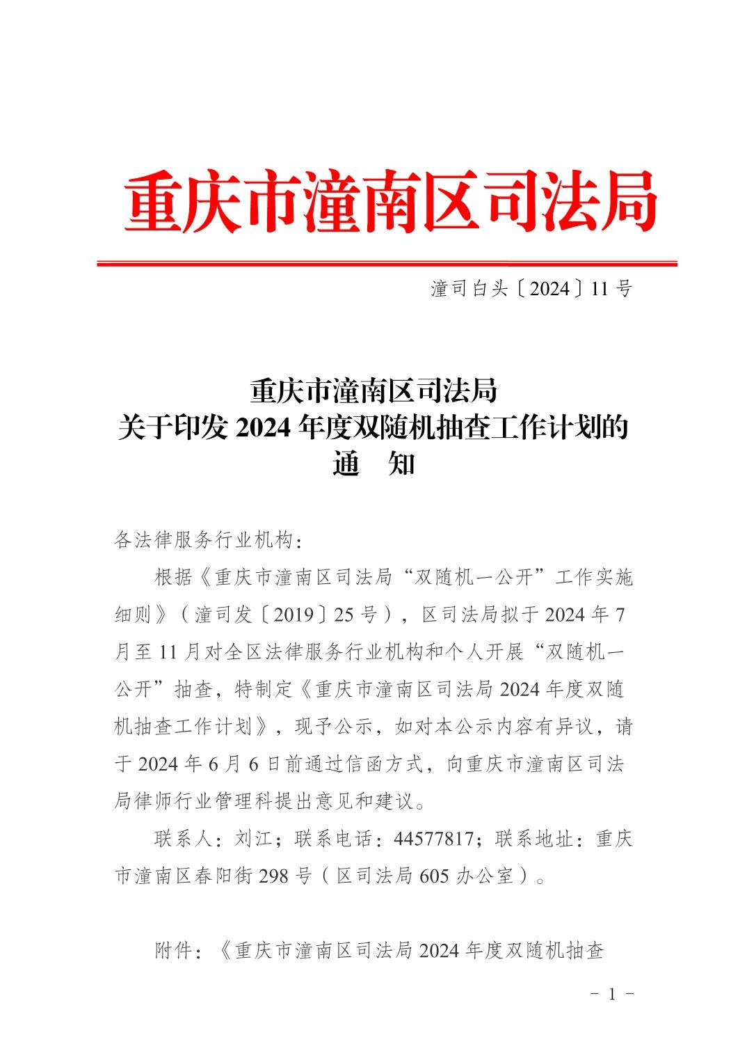重庆市潼南区司法局关于印发 2024 年度双随机抽查工作计划的通知