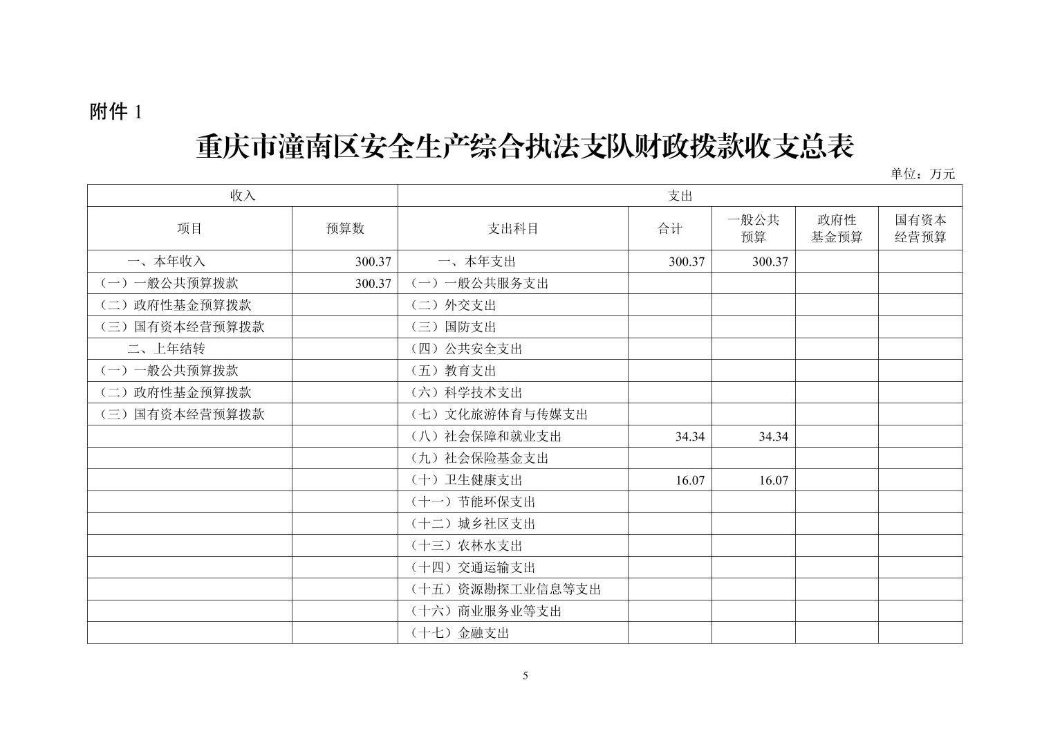 重庆市潼南区安全生产综合执法支队2025年部门预算公开