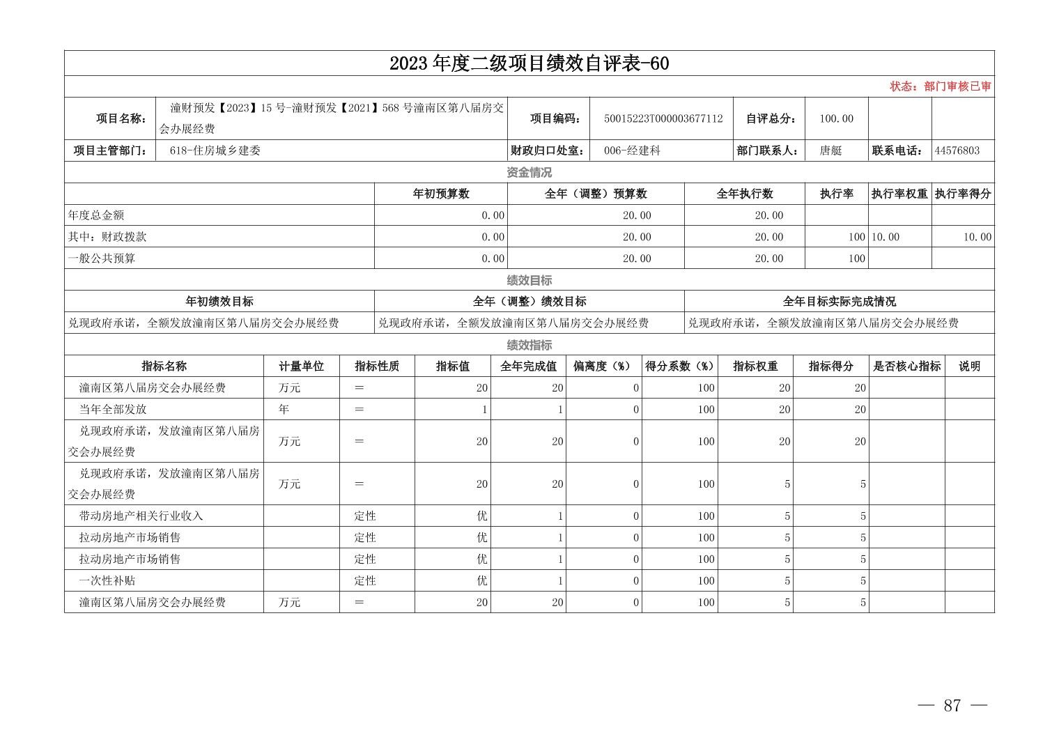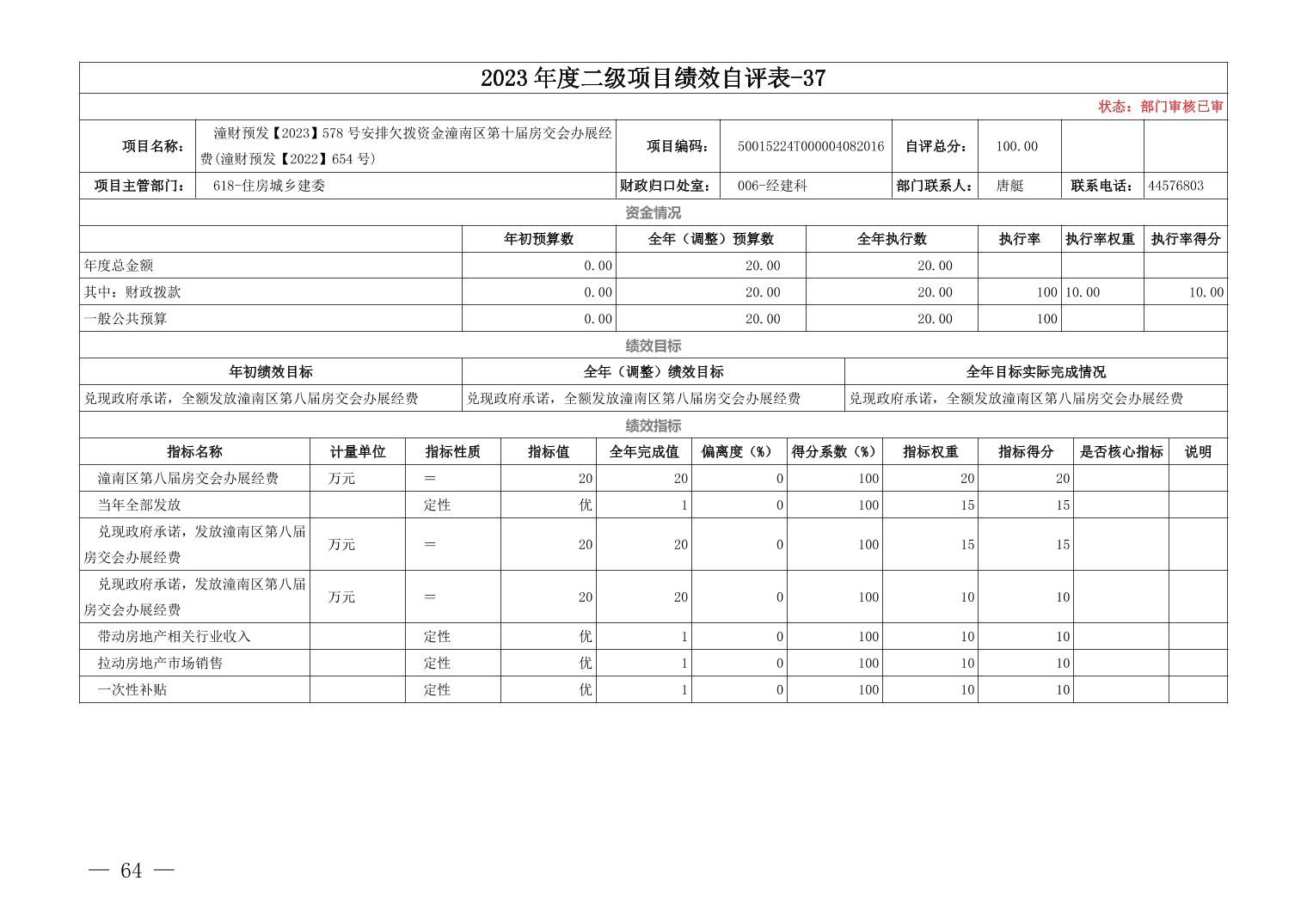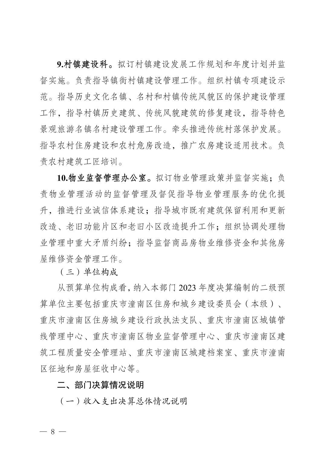 重庆市潼南区住房和城乡建设委员会(本级)2023年度部门决算公开