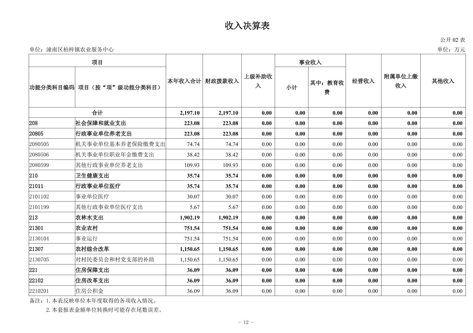 重庆市潼南区柏梓镇农业服务中心2024年决算公开说明
