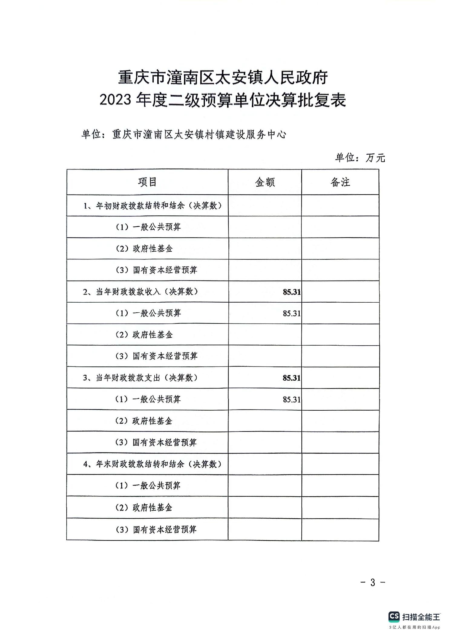 重庆市潼南区太安镇村镇建设服务中心_2023年度决算公开