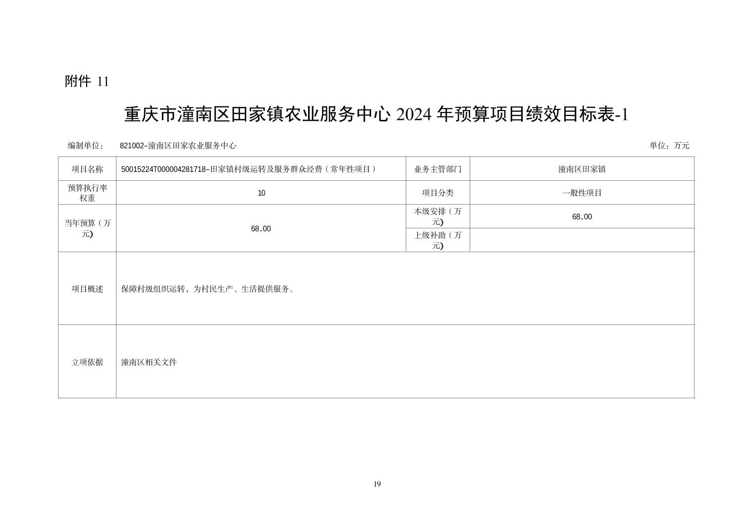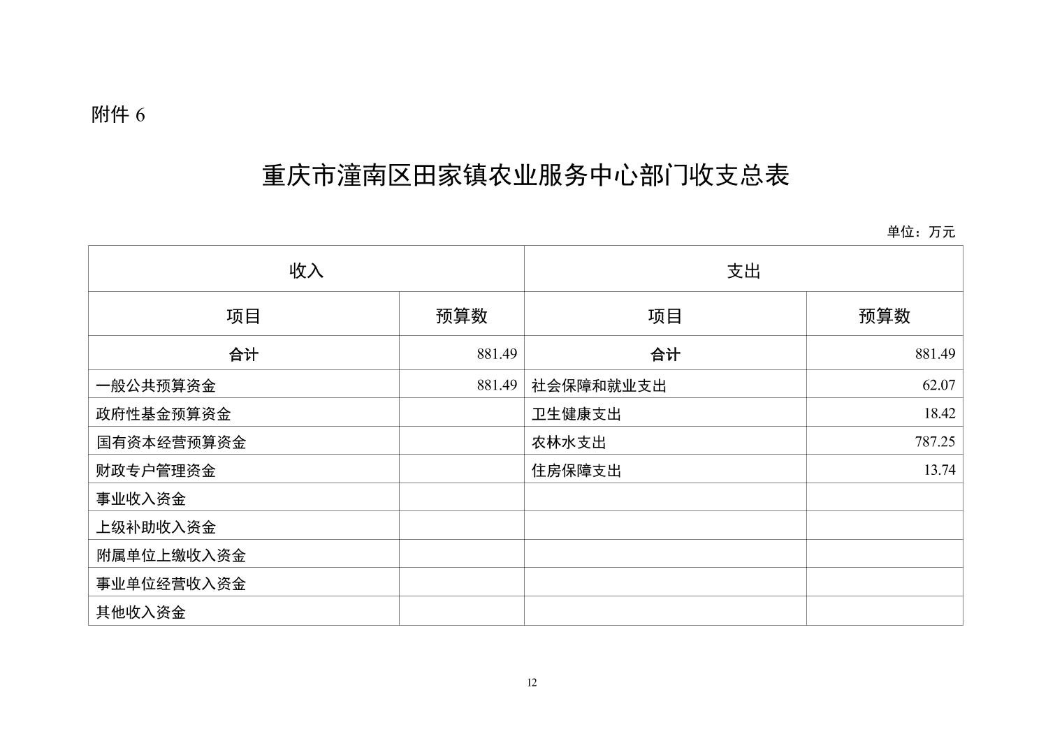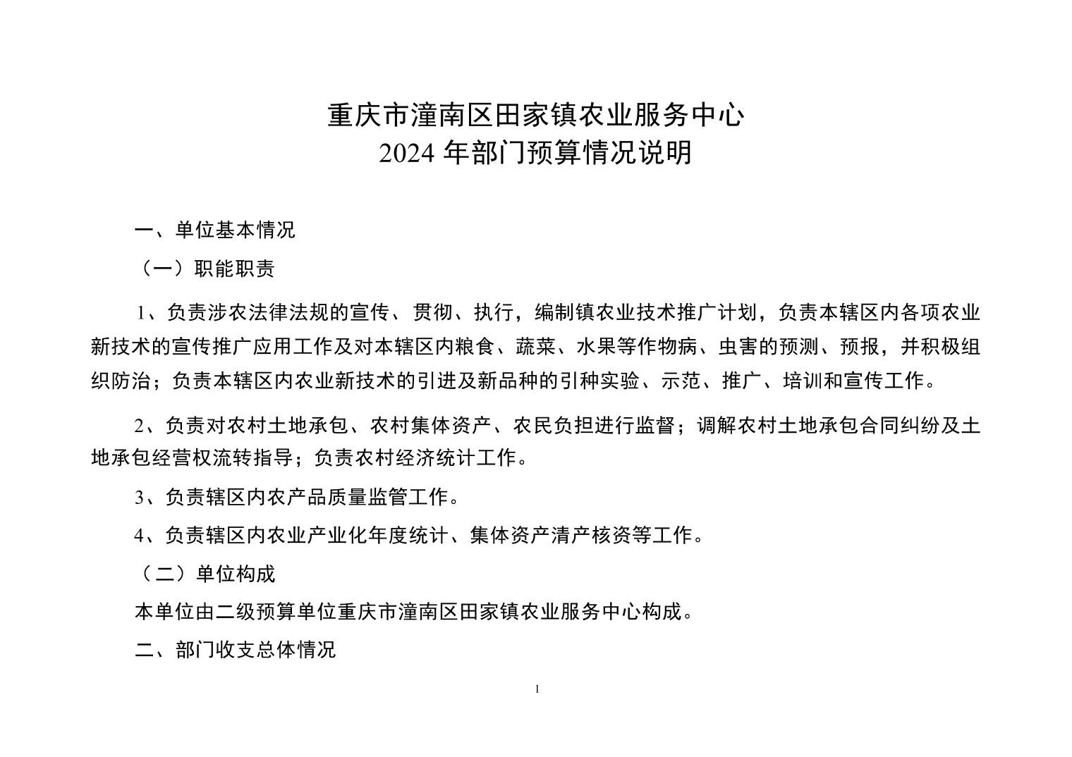 重庆市潼南区田家镇农业服务中心2024年部门预算公开