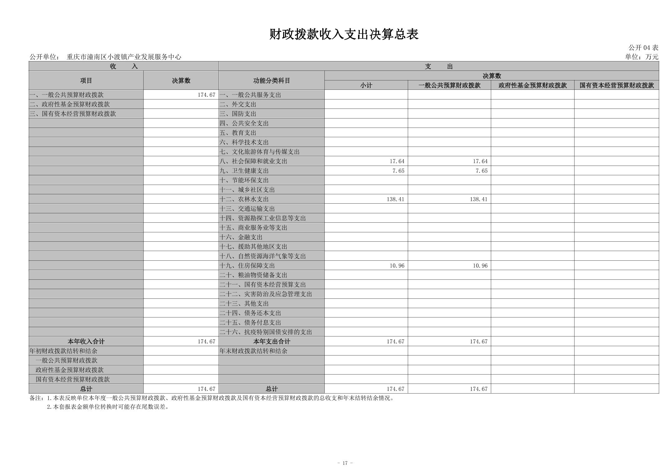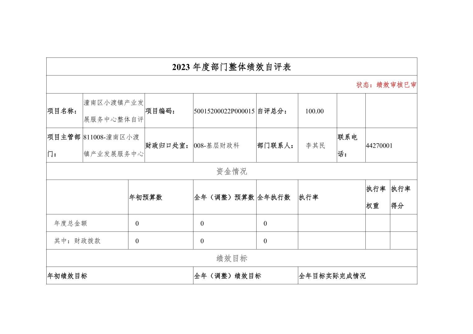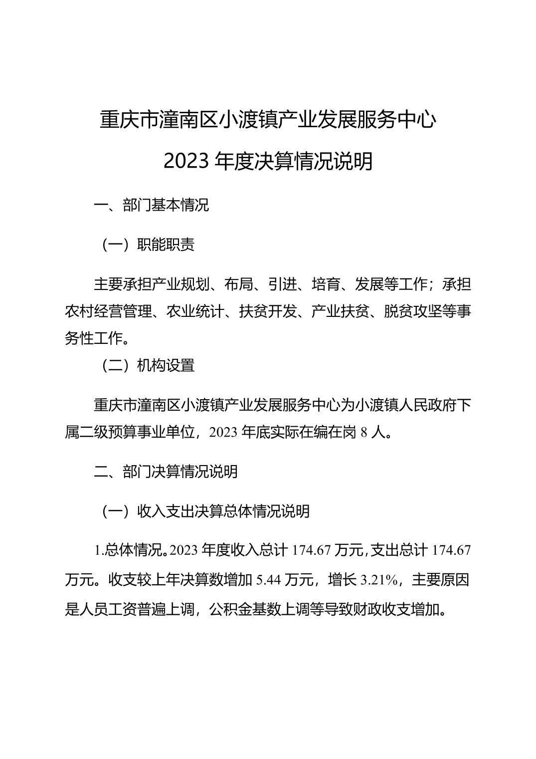 重庆市潼南区小渡镇产业发展服务中心2023年度决算公开